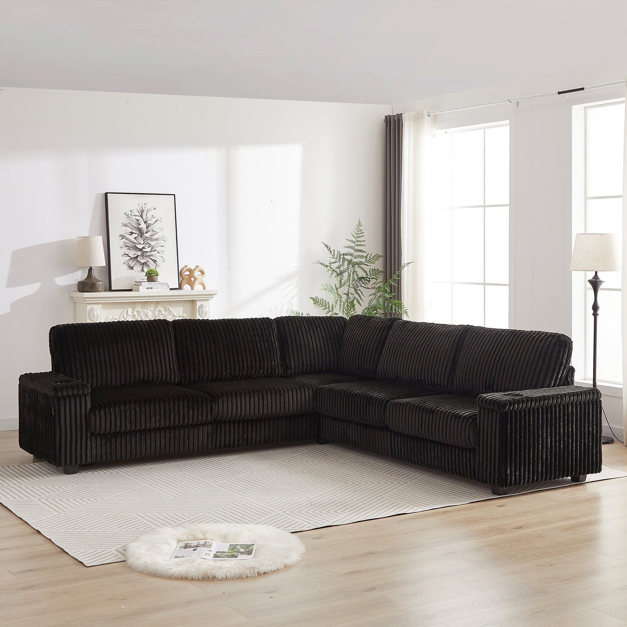 - The NEVAEH Corner Sofa features a unique design that includes two storage compartments, two USB ports, and two cup holders. This thoughtful design allows for easy charging of devices while enjoying a drink on the sofa, without any worries of spills or stains. Additionally, the armrest is designed to conveniently store snacks and books.